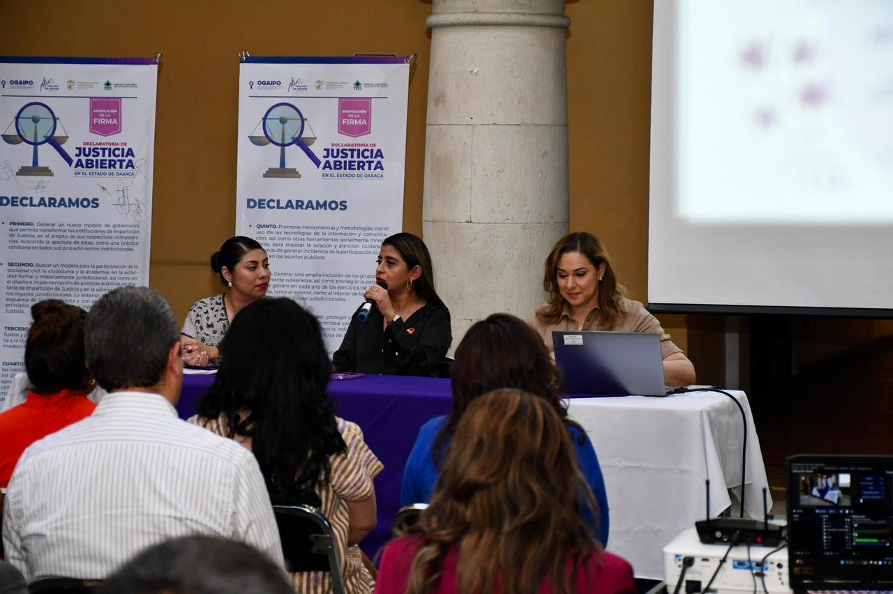 La Presidenta del Tribunal, Cruz Itzel Espinosa Rojas, y la Secretaria de las Mujeres, Anahí Sarmiento Pérez, agradecieron la participación de la Secretaria de Honestidad, Leticia Elsa Reyes López, las Magistradas Elizabeth Bautista Velasco y Gloria Ángeles Cruz López, magistradas del Tribunal Electoral del Estado de Oaxaca, Sarahí Noriega Ricárdez, Auditora Superior de Fiscalización del Estado de Oaxaca y personas juzgadoras del ámbito federal y estatal, cuya presencia fortalece la colaboración para construir entornos laborales libres de violencia.